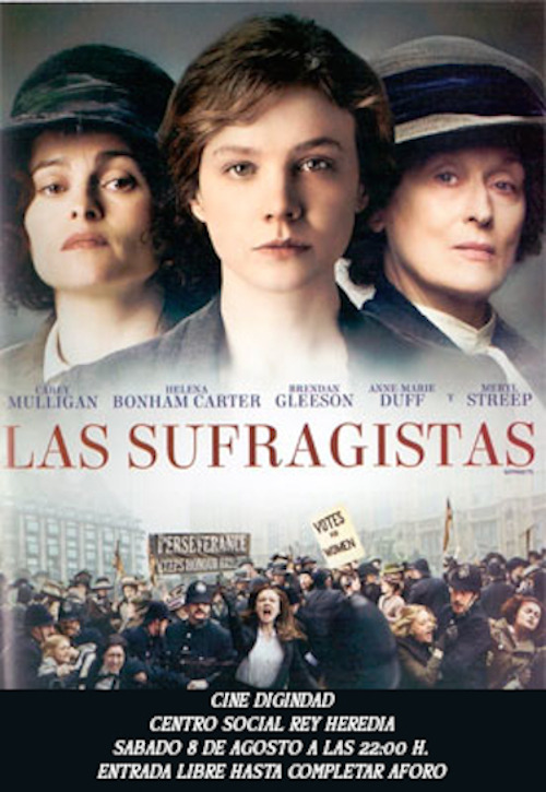 Sinopsis: El movimiento sufragista nació en Inglaterra en vísperas de la Primera Guerra Mundial. La mayoría de las sufragistas no procedían de las clases altas, sino que eran obreras que veían impotentes cómo sus pacíficas protestas no servían para nada. Entonces se radicalizaron y, en su incansable lucha por conseguir la igualdad, se arriesgaron a perderlo todo: su trabajo, su casa, sus hijos y su vida. La protagonista es Maud (Carey Mulligan), una mujer que reivindicó denodadamente la dignidad de las mujeres.