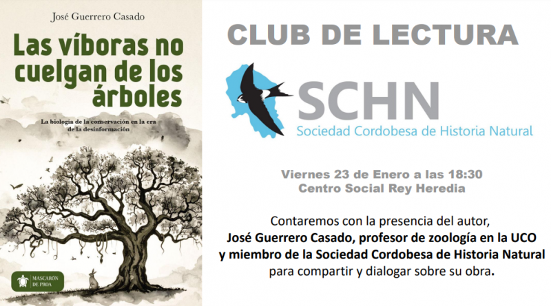 Club de Lectura – Las víboras no cuelgan de los árboles, de José Guerrero Detalles de Evento Fecha: viernes, 23 enero 2026 Lugar de encuentro: Centro Social Rey Heredia Categorías: Actividades/eventos En esta ocasión nos acompañará el autor del libro, Las víboras no cuelgan de los árboles, de José Guerrero
