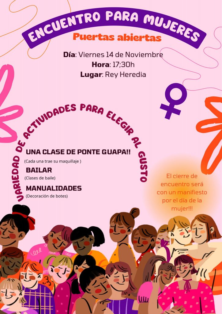 Encuentro para Mujeres – Alumnos/as del grado de integración social del Colegio Ferroviario Detalles de Evento Fecha: viernes, 14 noviembre 2025 17:30 – 19:00 Lugar de encuentro: Sala 12 - C.S. Rey Heredia. Categorías: Actividades/eventos Reservadas las Salas 11 y 12.