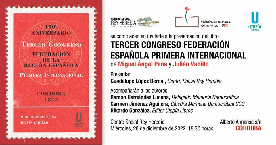 Presentación del Libro «150 aniversario del Congreso de Córdoba de 1872» Día 28 de Diciembre, a las 18:30h.