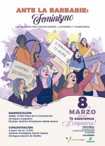 El 8 de marzo día Internacional de las Mujeres LA PLATAFORMA NOSOTRAS DECIDIMOS os INVITAMOS a la MANIFESTACIÓN que el domingo 8M saldrá las 12.30h de la Plaza de la Constitución (antiguos juzgados) hasta los Jardines Presidente Adolfo Suarez (antigua renfe).