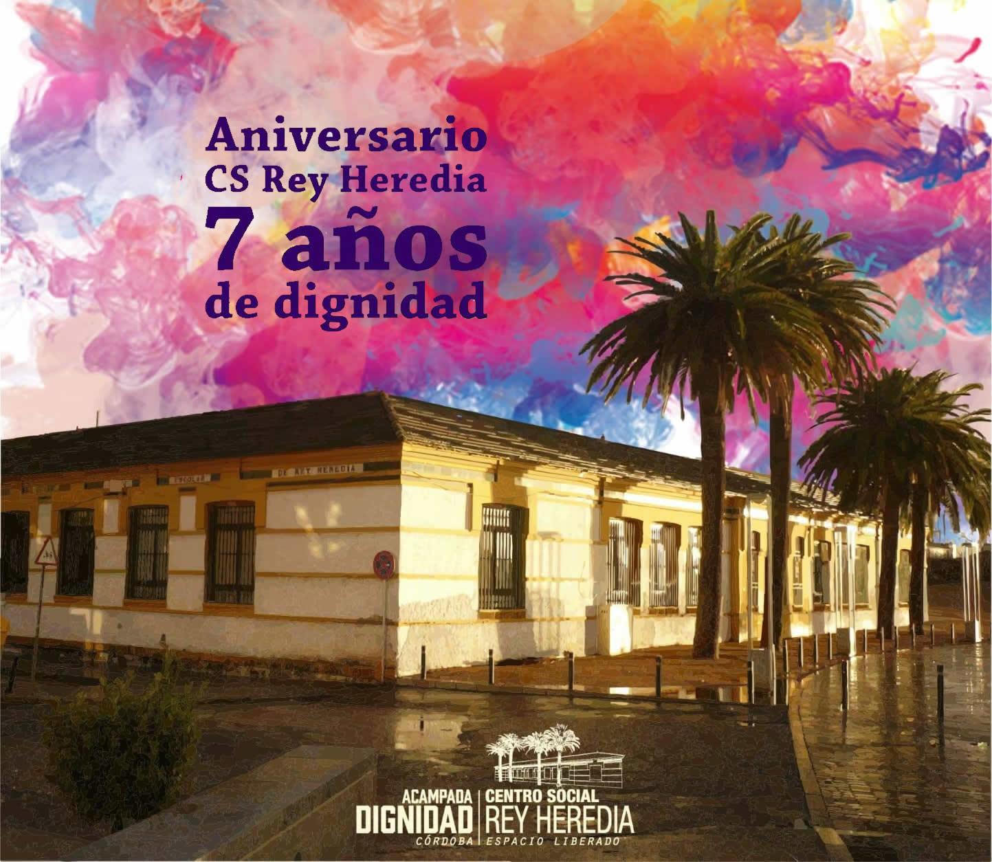 Este año el C. S. Rey Heredia no celebrará su aniversario en la fiesta de convivencia con todas las personas, colectivos y organizaciones sociales que forman parte de este proyecto de dignidad, solidaridad y apoyo mutuo. Pero si celebraremos en la distancia y recordando, todos los maravillosos momentos que han sucedido entre estas paredes, celebramos que lucha continúa y lo hacemos juntas, celebramos que hace 7 años cruzamos esta puerta cargadas de ilusión, celebramos que juntas hemos conseguido un espacio de encuentro y de reivindicación, celebramos que donde había grietas y suciedad en las paredes ahora lucen unas hermosas plantas.