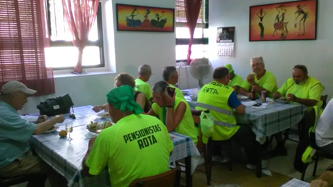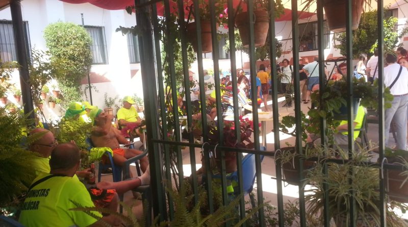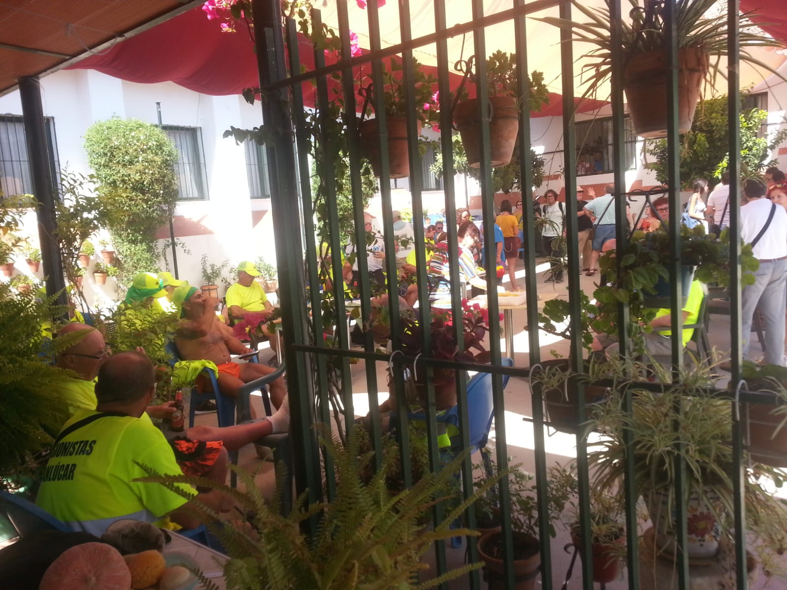 La marcha de los pensionistas en el Patio del Centro relajados descanzando.