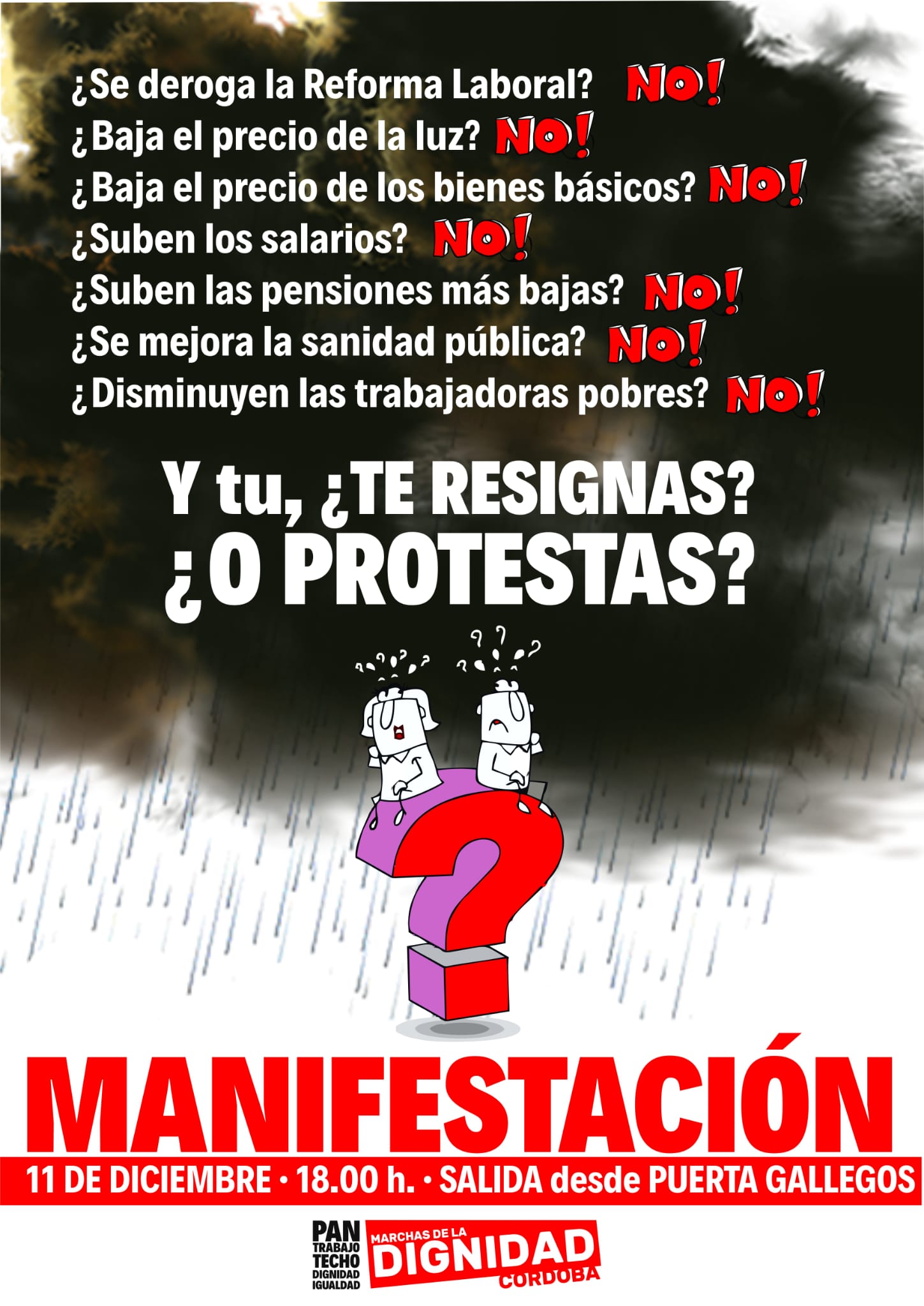 Manifestación – Y tu, ¿Te resignas? ¿O protestas?, Sábado 11 diciembre, a las 18:00h. (Puerta Gallegos)