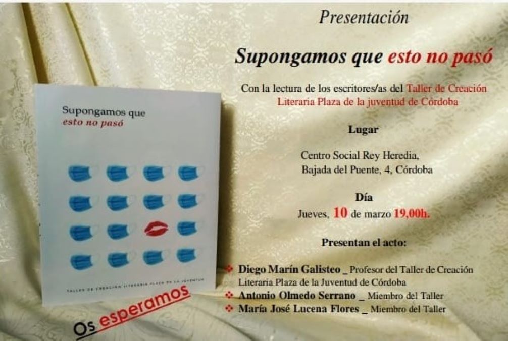 Presentación del libro «Supongamos que esto no pasó» del Taller de Creación Literaria Plaza de la Juventud. 10 de marzo, a las 19:00h.