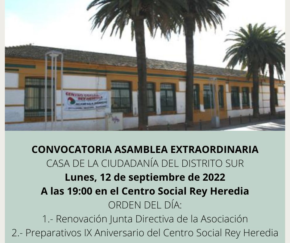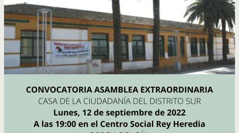Convocatoria Asamblea Extraordinaria «Casa de la Ciudadania del Distrito Sur – C.S. Rey Heredia»